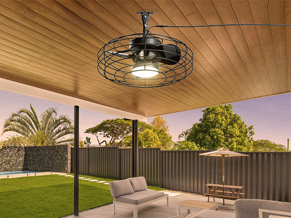 Ohniyou Farmhouse Ceiling Fan with Caged Light 051