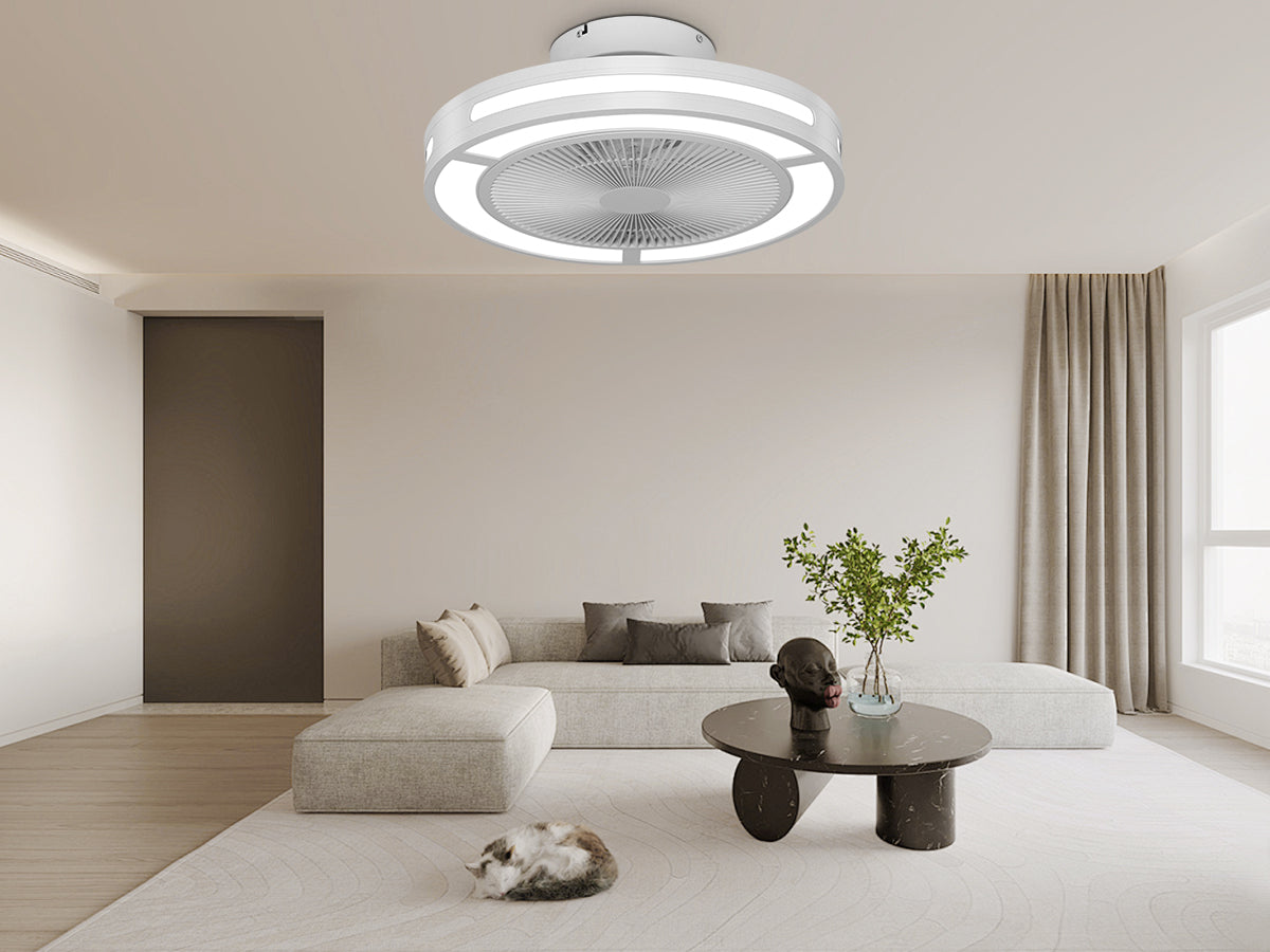 Ohniyou Low Profile Ceiling Fan with Light, 19'' Small Flush Mount Ceiling Fan,040S