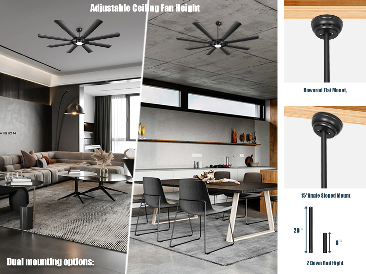 Large 76 inch Ceiling Fan: This large ceiling fan with 8 rugged wooden blades provide powerful airflow with over 8000 CFM.