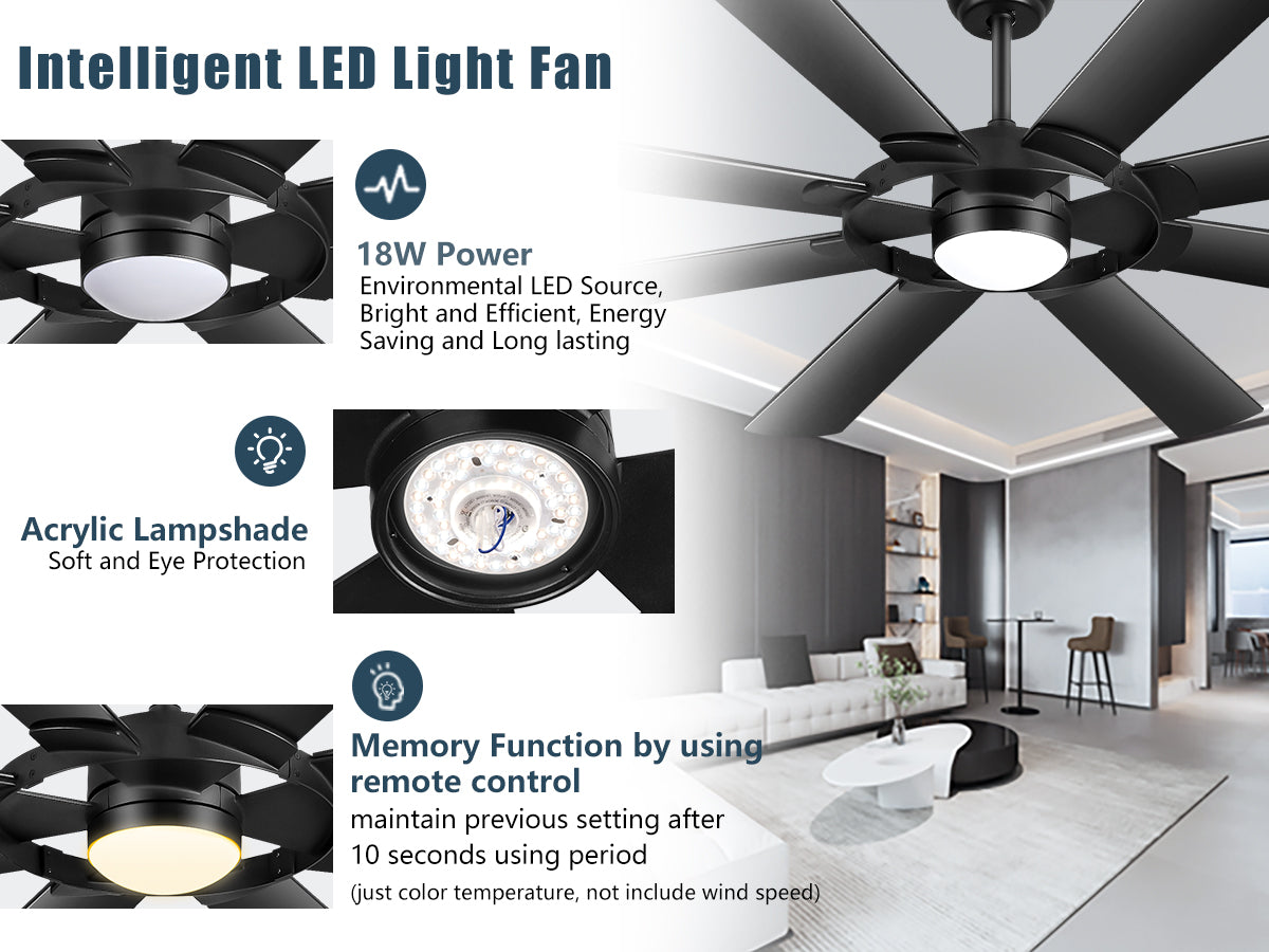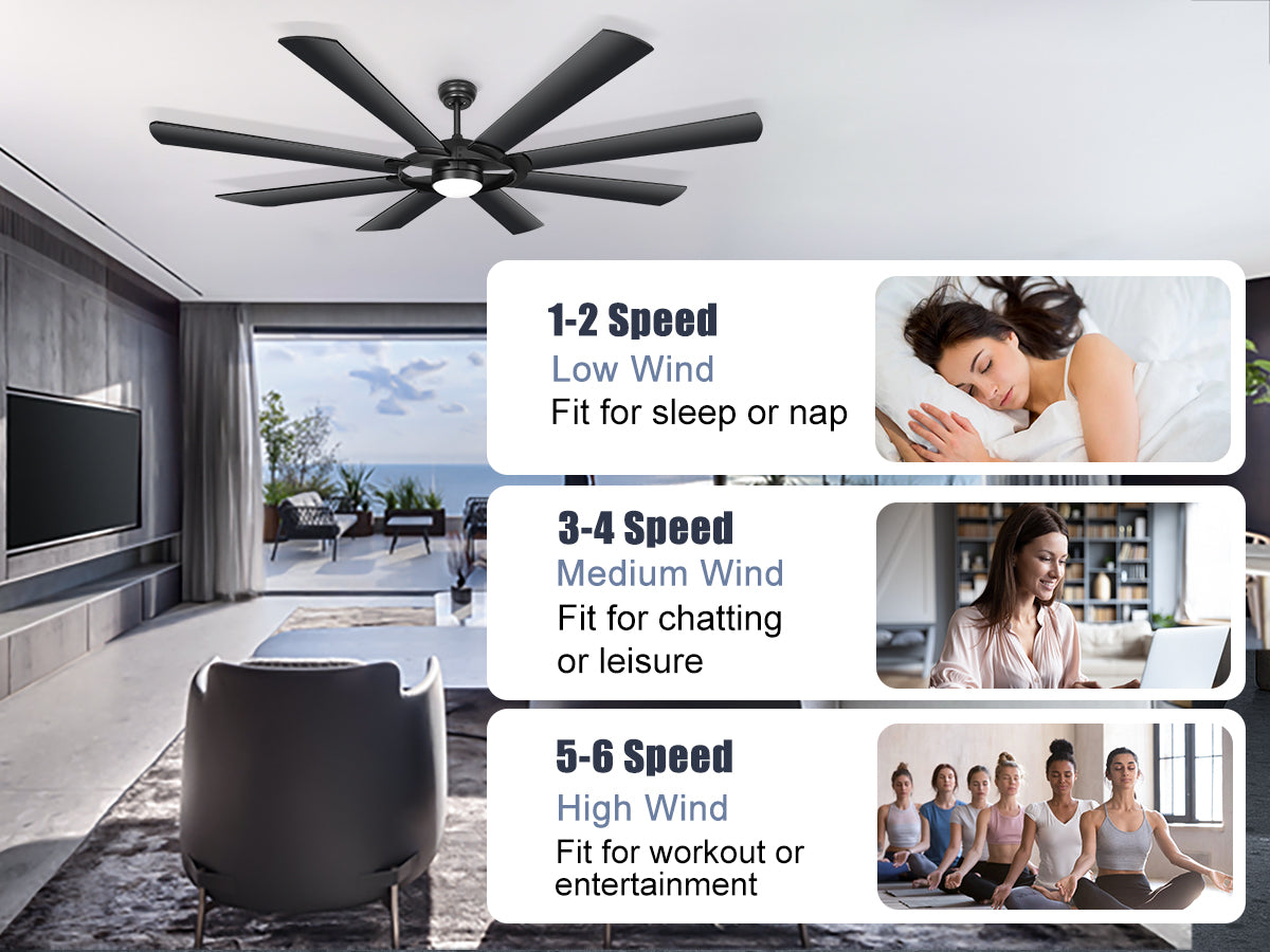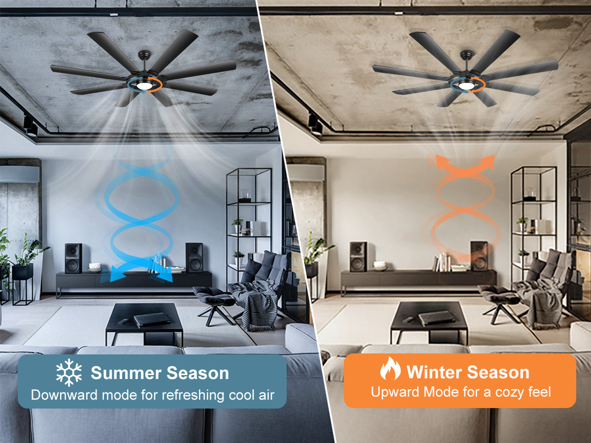 Six speeds control of your comfort, forward mode circulates air downward to cool you in summer, the reverse upward mode to rotate and circulates warm air in winter.