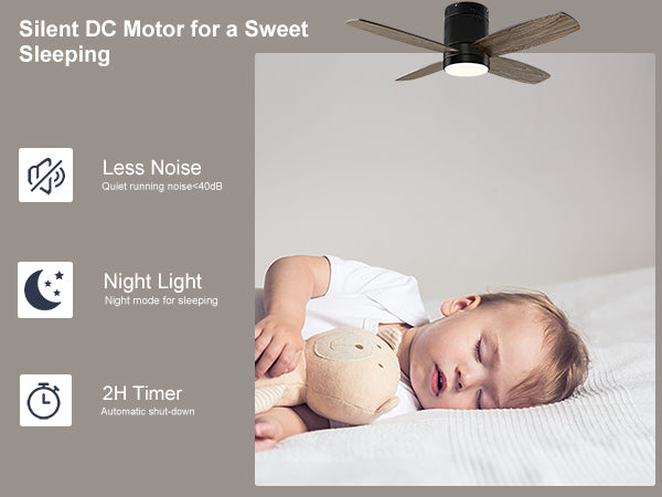 This 38-inch 6-speed DC motor bedroom ceiling fan is silent and energy-saving, and the night light and timing function is very suitable for use while sleeping