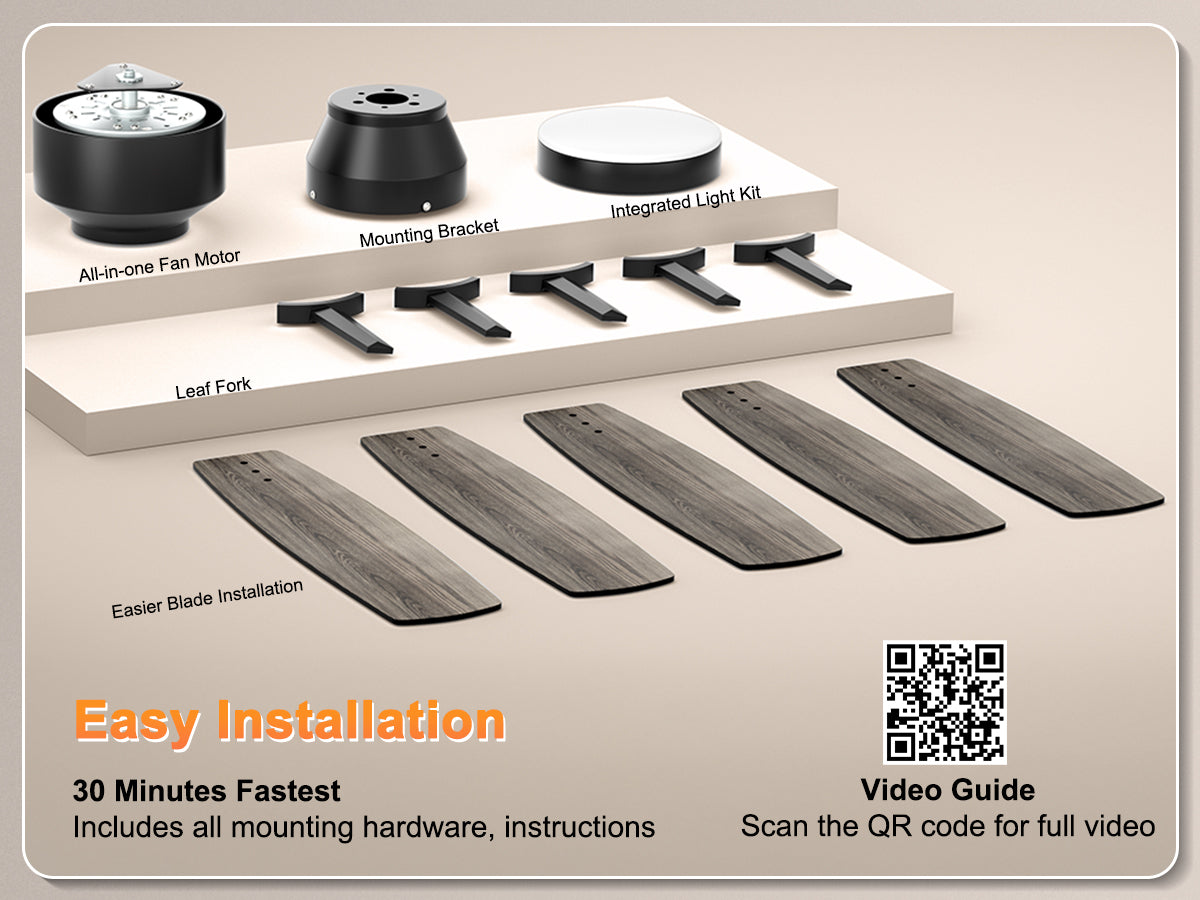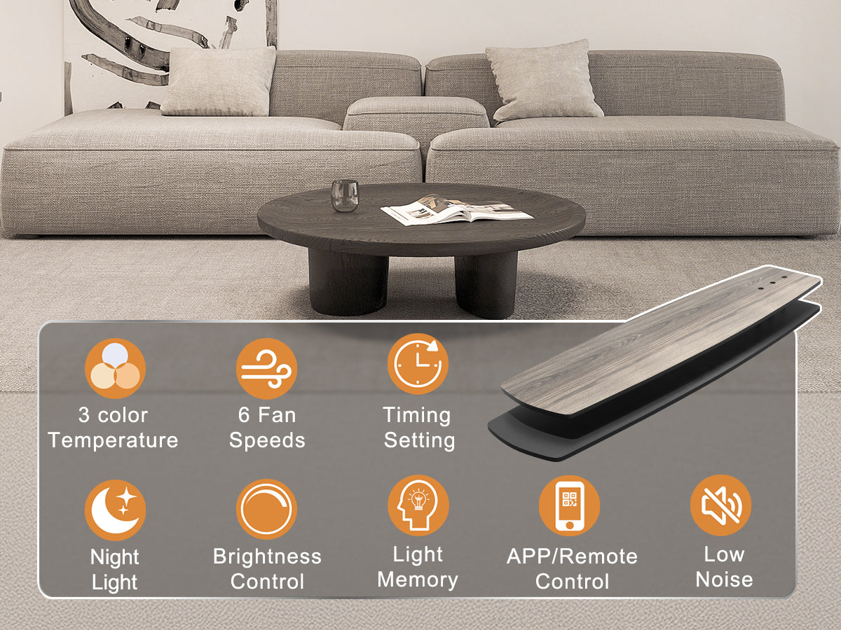 This modern ceiling fan with lights has all functions controllable via both the included remote and smartphone app. Adjust fan speed, light brightness/color, and set timers hands-free
