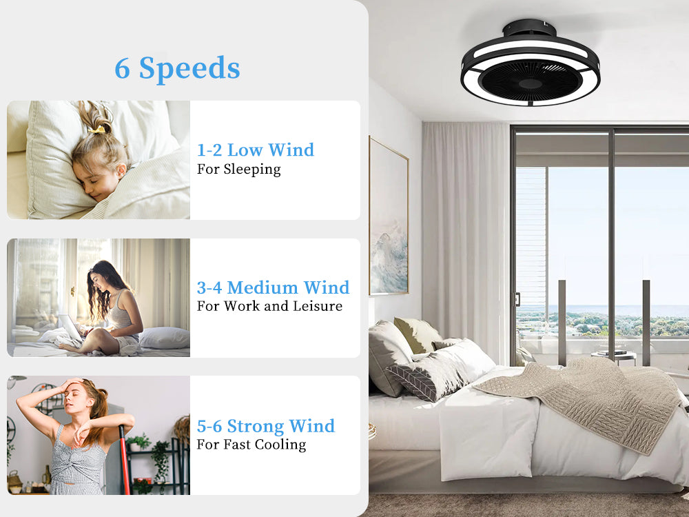 The fan's remote control allows for 6 air speed adjustments, providing powerful airflow with quiet performance and better air circulation for you